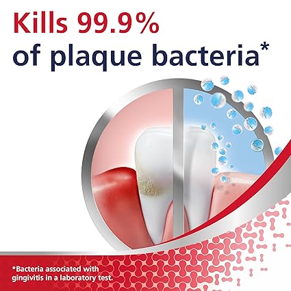 - Antibacterial mouthwash that kills 99.9 percent of plaque bacteria (1)